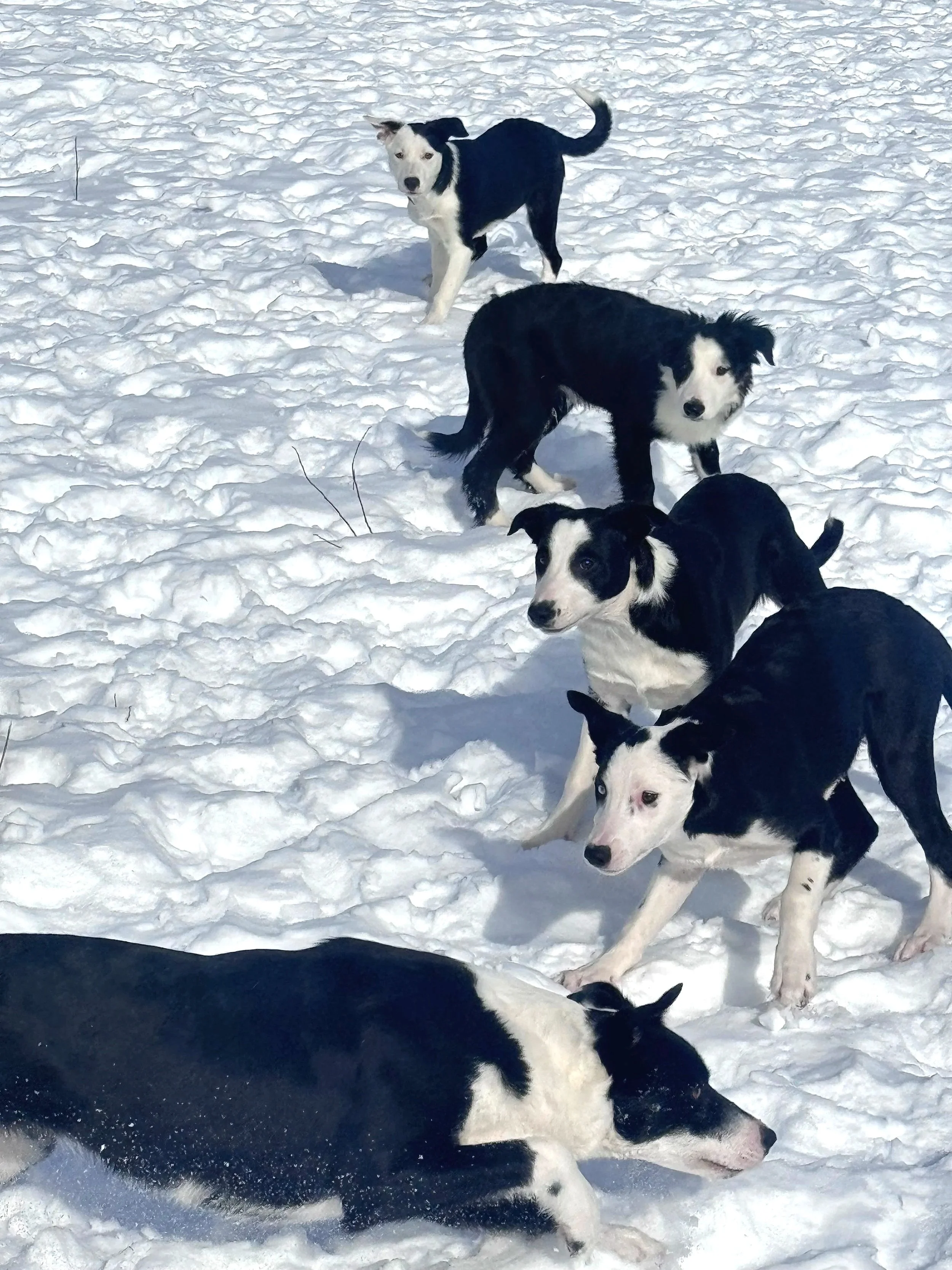 6 puppies (3m/3f) were born on 10/10/25. From the day of their advent, they explored, cried out, struggled, and strove. It was a marvel to behold: such vigorous, well developed puppies each endowed with an inimitable configuration of talents, traits, and spirit. Their gifts for herding emerged early and consistently. Their focus at 5 weeks old was prodigious, sustaining unbroken herding activity for up 25 minutes! These incandescent creatures are grandpups of Dean McAuley’s Joe and Dewi Jenkins Clwyd Bob, and the greatgrand pups of Martin Feeney’s indomitable Jack, James McCloskey’s ever celebrated Sweep, and H.J. Francis’ powerful Glan Y Gors Tadgh. Bob, Joe, Jack, Sweep have competed in the International Supreme Herding trial on multiple occasions, and Joe and Jack in particular are tough as nails hill dogs; although we do not condone the practice, it may be worth noting that the offspring of Bob, Joe, Jack, Sweep are often sold at auction for tens of thousands of dollars so desirable are their bloodlines. Each puppy has received over a minimum of approximately 350 hours of training and neurological stimulation. To the best of our knowledge, this is the only litter to unite these four exemplary dogs.