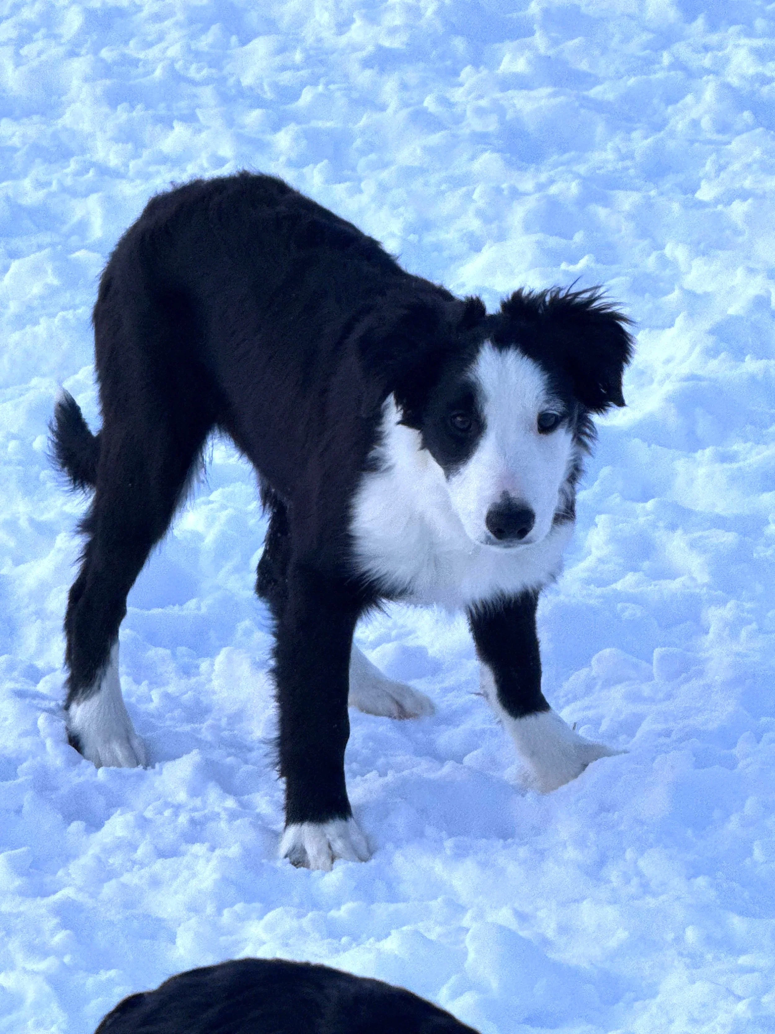 6 puppies (3m/3f) were born on 10/10/25. From the day of their advent, they explored, cried out, struggled, and strove. It was a marvel to behold: such vigorous, well developed puppies each endowed with an inimitable configuration of talents, traits, and spirit. Their gifts for herding emerged early and consistently. Their focus at 5 weeks old was prodigious, sustaining unbroken herding activity for up 25 minutes! These incandescent creatures are grandpups of Dean McAuley’s Joe and Dewi Jenkins Clwyd Bob, and the greatgrand pups of Martin Feeney’s indomitable Jack, James McCloskey’s ever celebrated Sweep, and H.J. Francis’ powerful Glan Y Gors Tadgh. Bob, Joe, Jack, Sweep have competed in the International Supreme Herding trial on multiple occasions, and Joe and Jack in particular are tough as nails hill dogs; although we do not condone the practice, it may be worth noting that the offspring of Bob, Joe, Jack, Sweep are often sold at auction for tens of thousands of dollars so desirable are their bloodlines. Each puppy has received over a minimum of approximately 350 hours of training and neurological stimulation. To the best of our knowledge, this is the only litter to unite these four exemplary dogs.